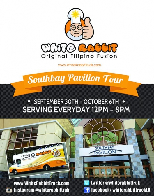 In observance of Pilipino American Heritage Month, we have decided to run a week long promotion in one of the most densely Pilipino populated areas in California…Carson, with the hopes of opening our next brick and mortar. Teaming up with the marketing geniuses at the SouthBay Pavilion marketing team, we have put together this #SBPtour2013 which will last from September 30 - October 6. We are still in search for the next home for the new restaurant location, with hopes of opening in Carson, Cerritos, or in any of the many cities that continually show us love and support. We are truly grateful for all our Pilipino predecessors who have made it possible for us, as well as the many Pilipino-Americans in the United States today, to follow our dreams. Thank you for everybody who believe in us and thanks to those that helped us spread the Pilipino fusion love everywhere we go. We look forward to seeing all of you in Carson and look out for a Tour near you! Mabuhay!